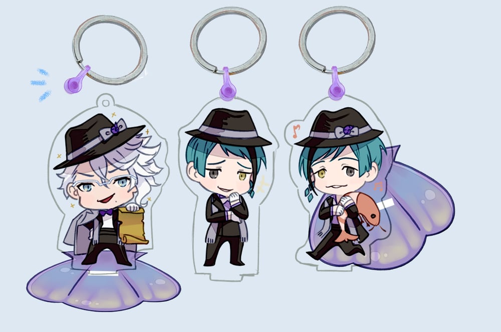 6.5cm double sided acrylic keychain that can double as a standee. Preorders will come with a sticker of the character you bought!